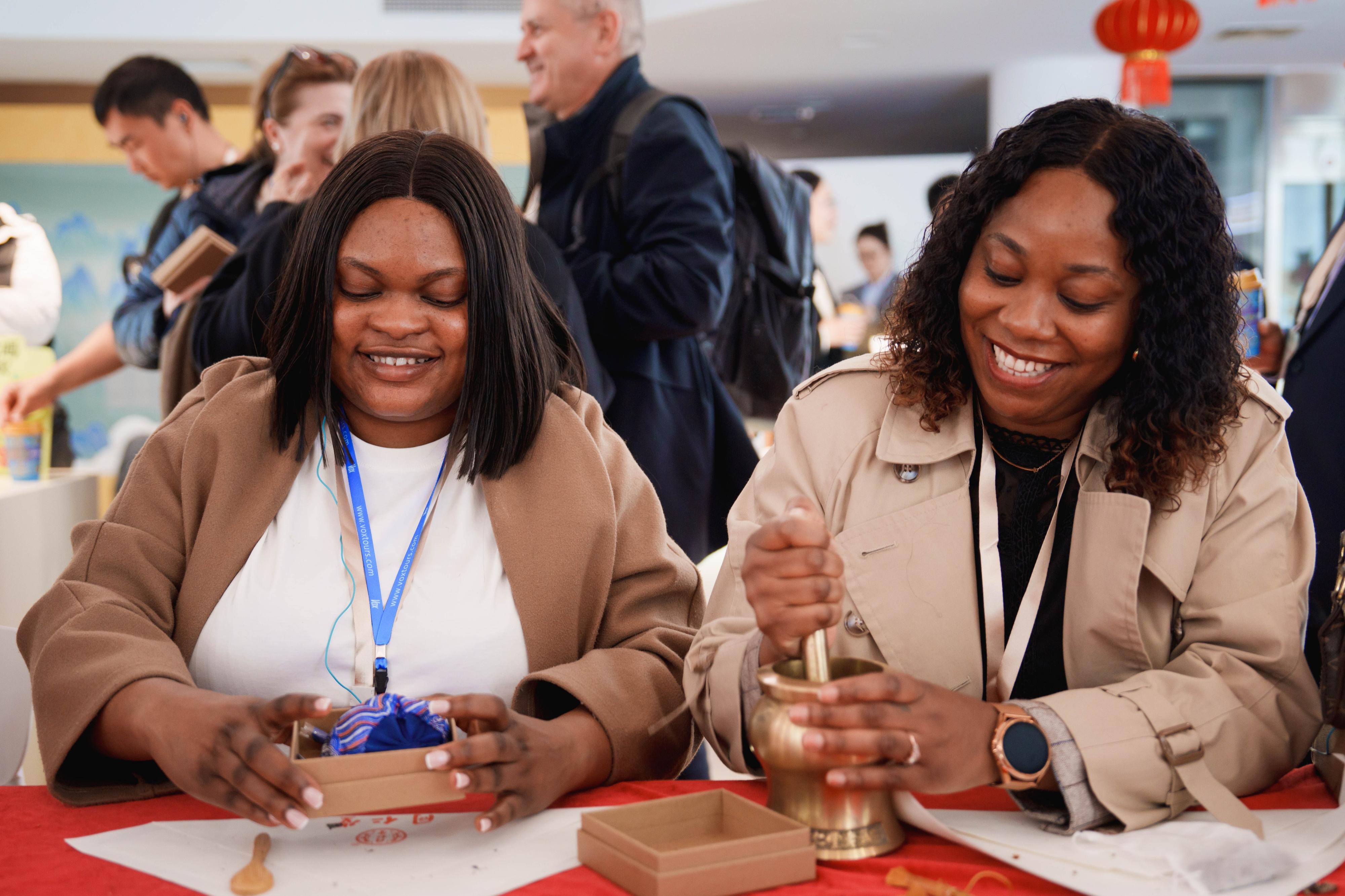 而在百年老字号同仁堂的中医药文化空间,一场可感、可闻、可体验的文化之旅生动展开。外交官们参观琳琅满目的药材与器具展示,感受中医“望闻问切”的诊疗过程,亲手制作春季养生香囊,体验古法制药技艺,切身感悟中医药“身心合一”的养生智慧,完成一次与传统中医文化的深度对话。